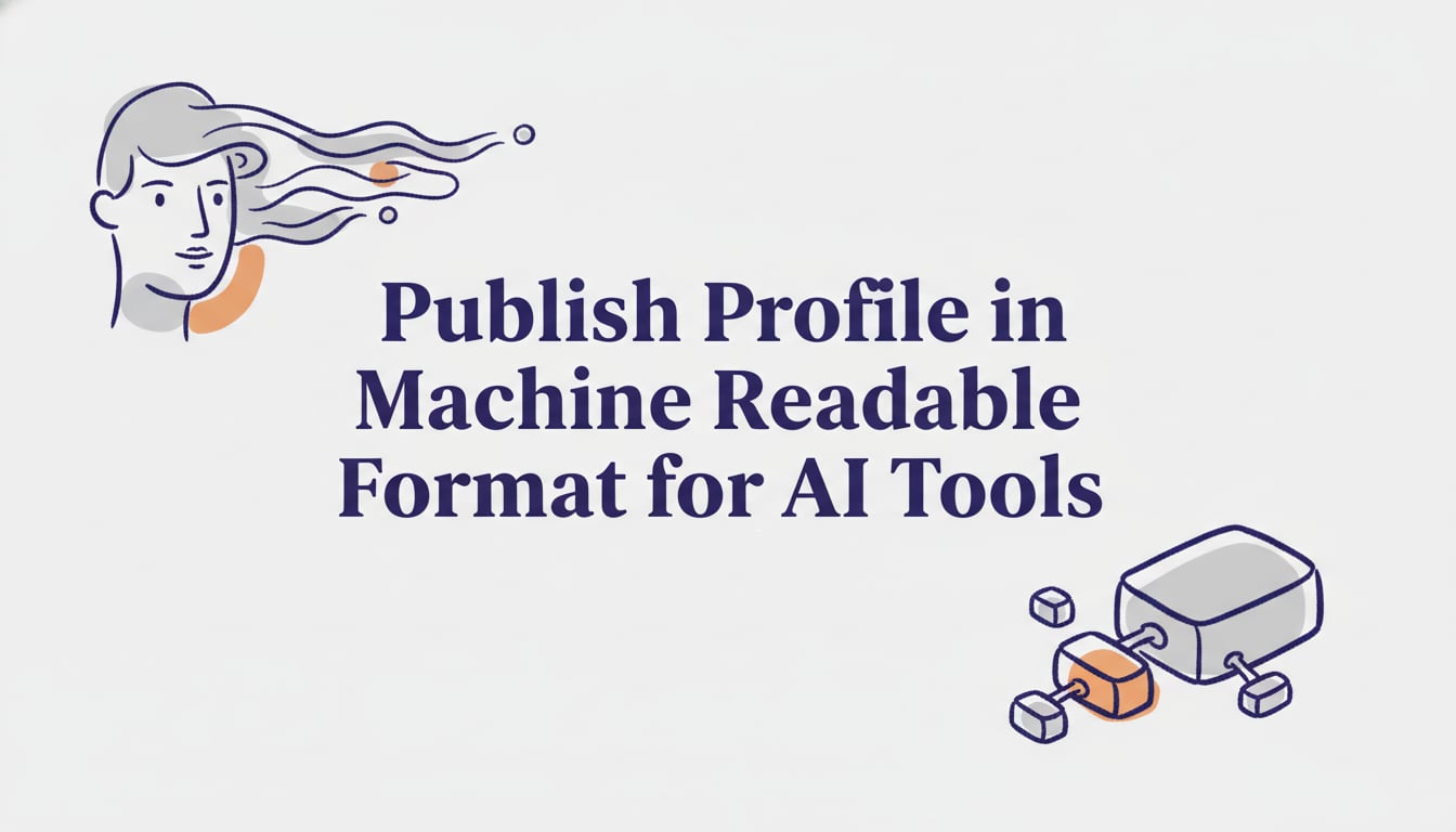 Learn how to publish profile in machine readable format for AI tools using JSON-LD Person + ProfilePage; validate, add sameAs, and increase visibility.